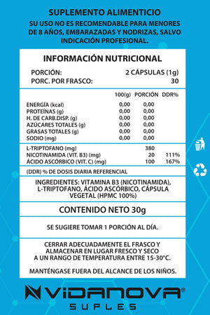 Recupera el control de tu energía y tu estado de ánimo con una fórmula diseñada para optimizar tu salud desde la raíz. El NAD+ Precursor de Vidanova es un suplemento de vanguardia que combina el L-Triptófano (aminoácido esencial) con Vitamina B3 y Vitamina C para potenciar la renovación celular y el equilibrio del sistema nervioso.